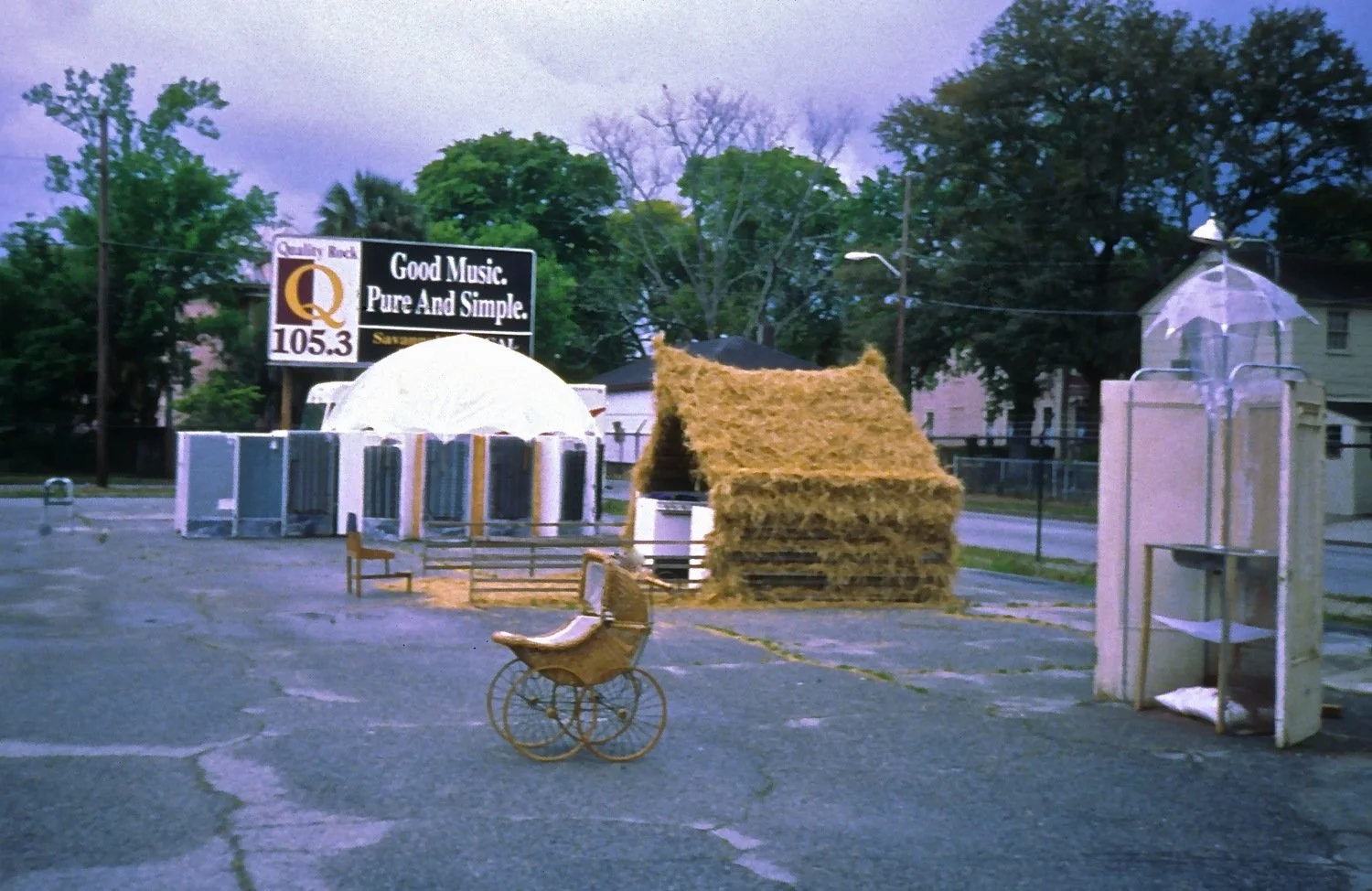 "Stove House" Stoves, straw, pillows, cool mint chewing gum, wood, children's chalk board